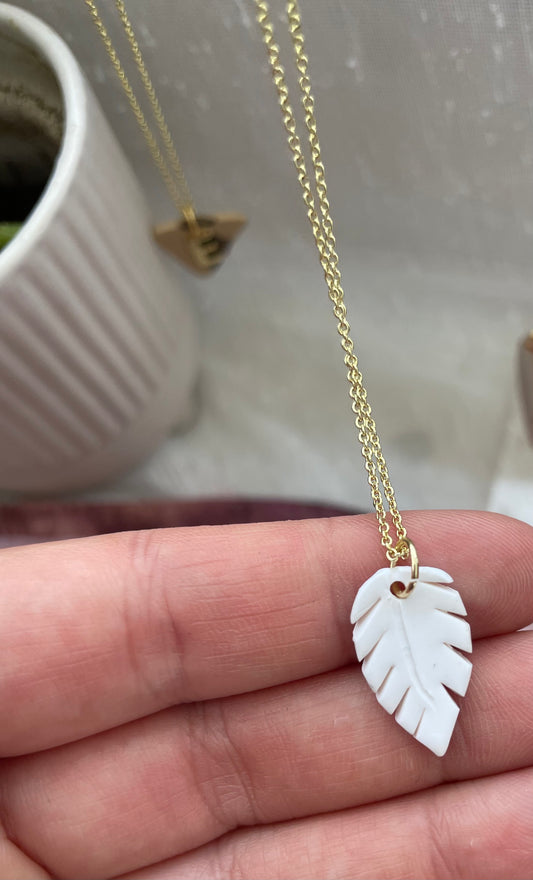 Leaf Charms Initial Necklace - 16 inch - 3 Options